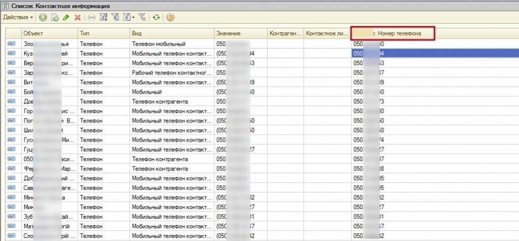 Мал. 1. Регістр відомостей "Контактна інформація". Реквізит "СRМ_НомерТелефона".