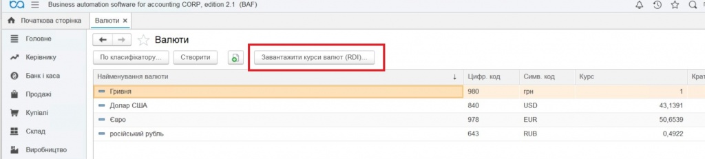 Мал. 6. Завантаження курсів валют одним натисканням завдяки RDI.