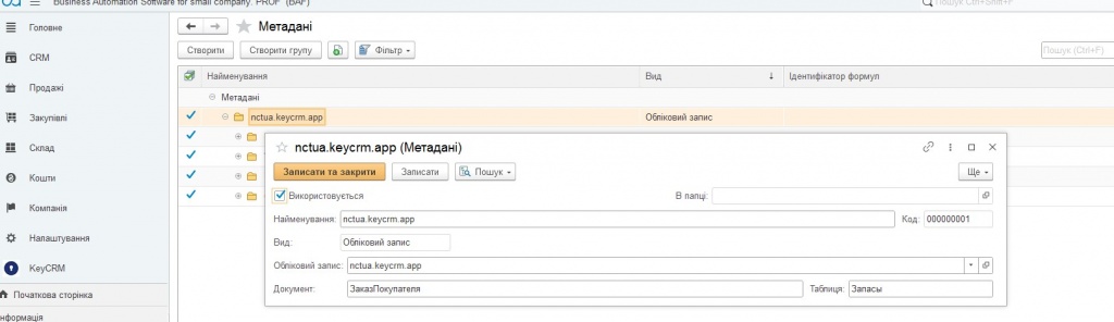 Fig. 5. Establishing correspondence between the "KeyCRM" directory and the "BAS" directory.