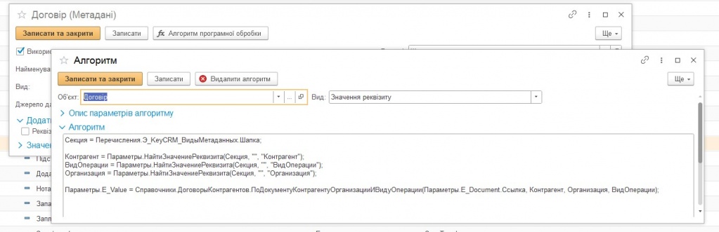 Fig. 2. Setting the document type and name of the tabular part of the order storage "KeyCRM".